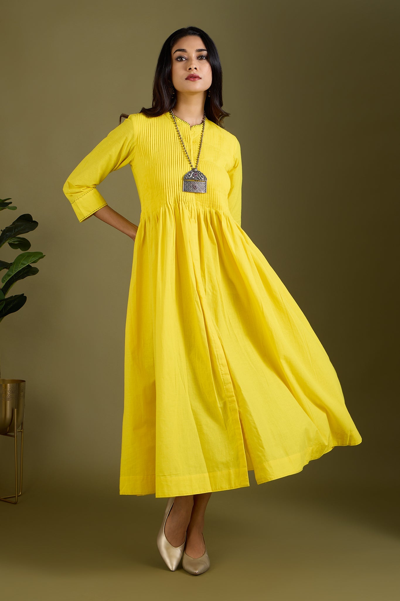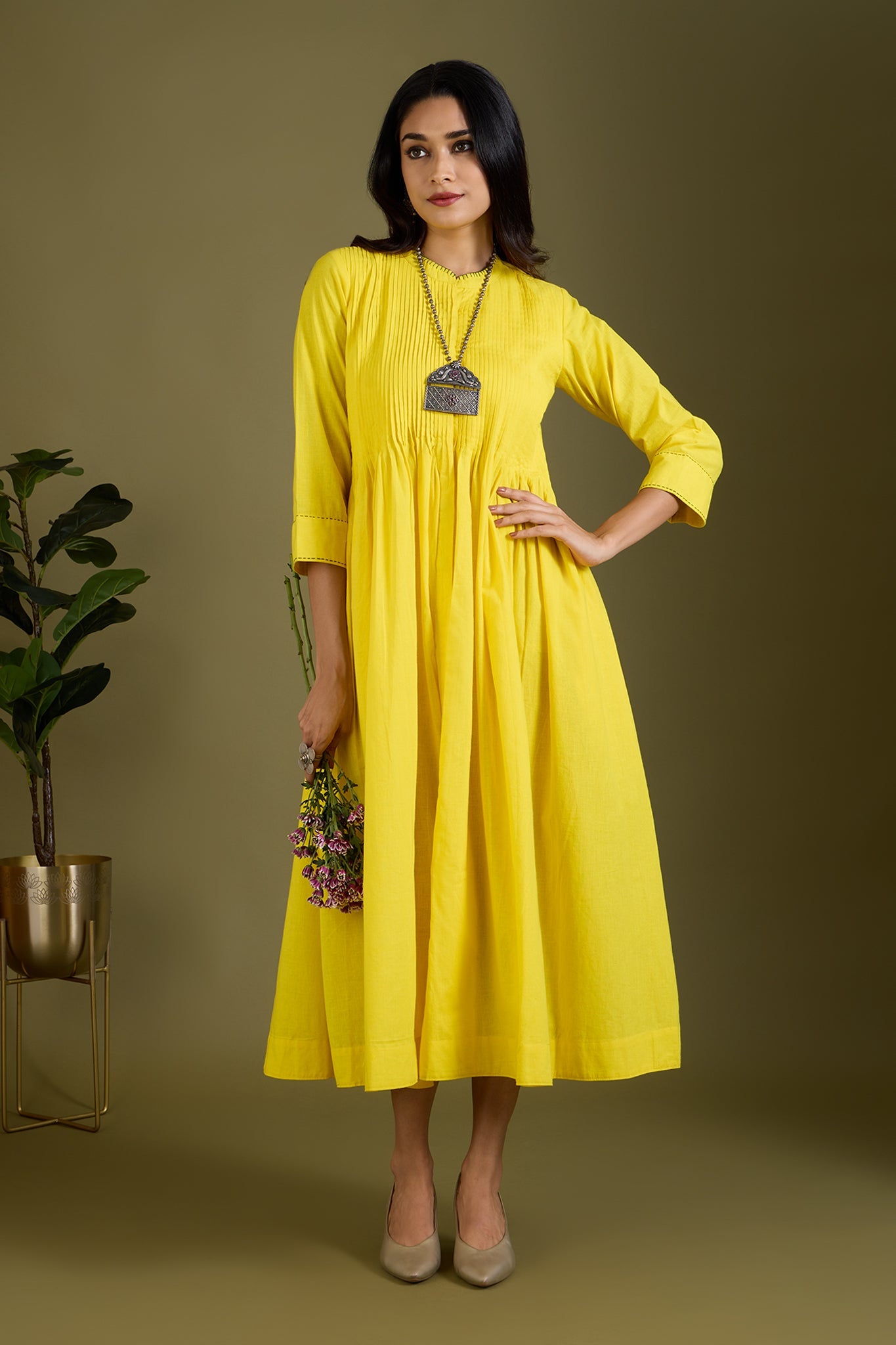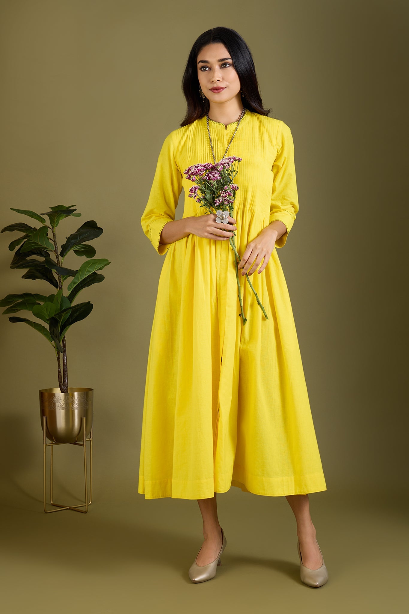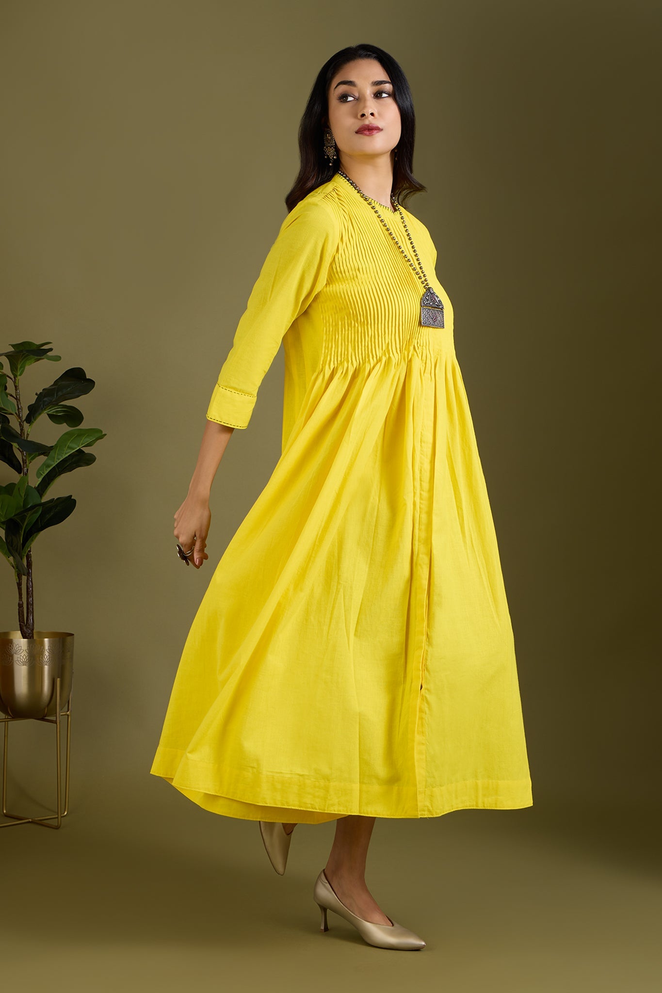 Maati Craft Zesty Yellow Pop Infinity Pntuck Dress